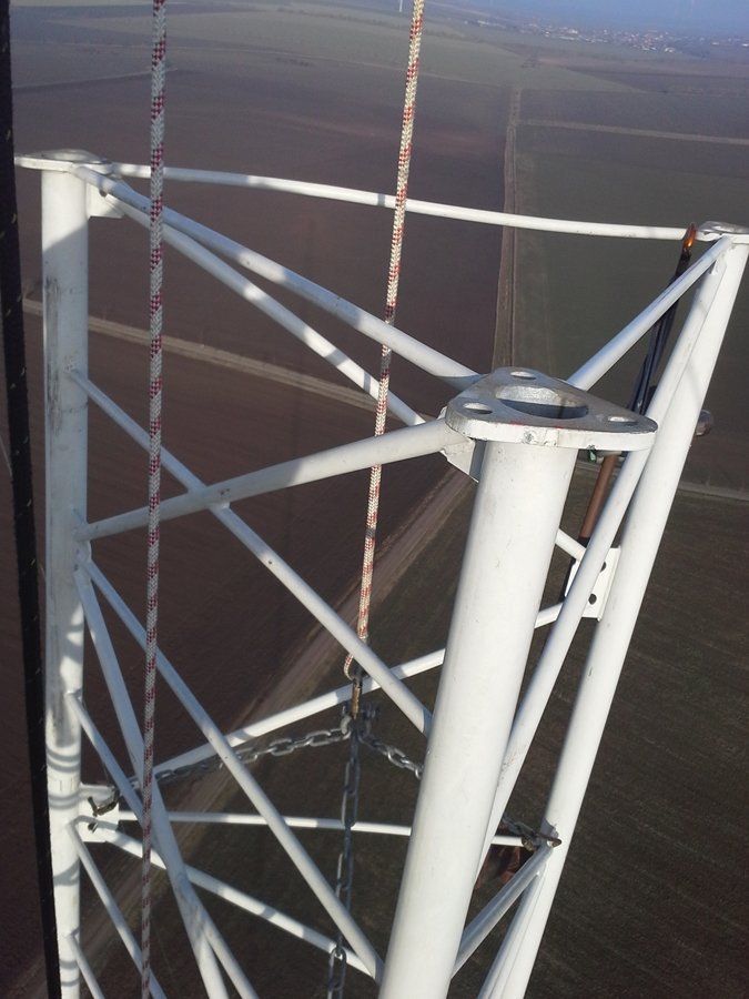 Of course, we are also happy to take over the maintenance of wind measurement masts for you. The vertical position of wind measuring masts, the testing of the required rope tension with a tensiometer. As well as checking the rope clamps and screwing them to the flanges with the required torque. Furthermore, checking the cabling and securing against cable damage through movement, checking the measuring instruments on the wind measuring mast and the flight lights, checking the horizontal position of the arms for the measuring instruments and checking the lightning protection.